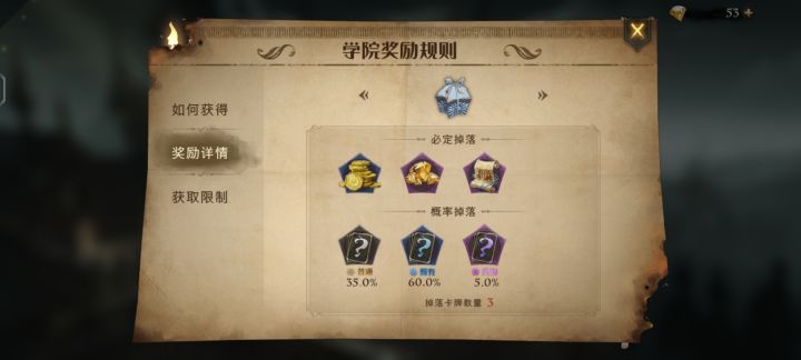 目录注:此贴内容根据上次测试版本整理,可能与公测版本存在较大差异⒈钻石获取方式汇总及使用建议⒉卡牌相关⒊学院积分⒋禁森相关⒌地图探索⒍回想相关⒎装饰相关⒏其它◇钻石获取方式1.学院奖励注:蓝色及以上品质箱子掉落(每日用额外钻石购买的两个不会掉落)2.学年记录(主线)获取3.决斗积分累计获取4.学院活动获得在每成功完成对应学院活动5/10/15次,可分别对应获得50/