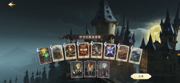 马尔福应该人手一只了,前期过渡可以丢出来送死吸引火力,双胞胎中期补伤,后期赫敏复制咒术卡同补伤(赫敏没有可以换成卡珊德拉,可输出可为火灰蛇提供生存空间)