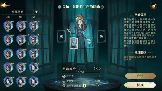今天给大家推荐一套用贝拉的回响组建的卡组,该套卡组或许可以帮助大家在决斗场取得连胜,现在就带各位小伙伴们来全面的了解一下吧!贝拉的回响效果:对敌方巫师造成伤害会积攒堕落值,堕落值到达36后会召唤两名可以释放钻心咒的食死徒,召唤后堕落值开始减少,清零后重新累计。(食死徒的强度根据卡牌平均等级和回响品质而定)组卡思路:想要触发贝拉回响的效果,需要直接向对方巫师自身发起攻击,所以在卡组卡牌选择上