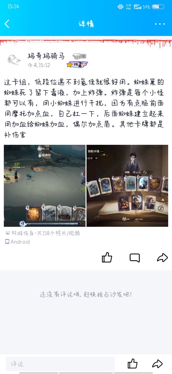 写一个低段位运气好可以乱杀的卡组,自创的。要是遇到氪佬可能就不太行。其实挺好用,但抽不到蜘蛛巢就有点难。