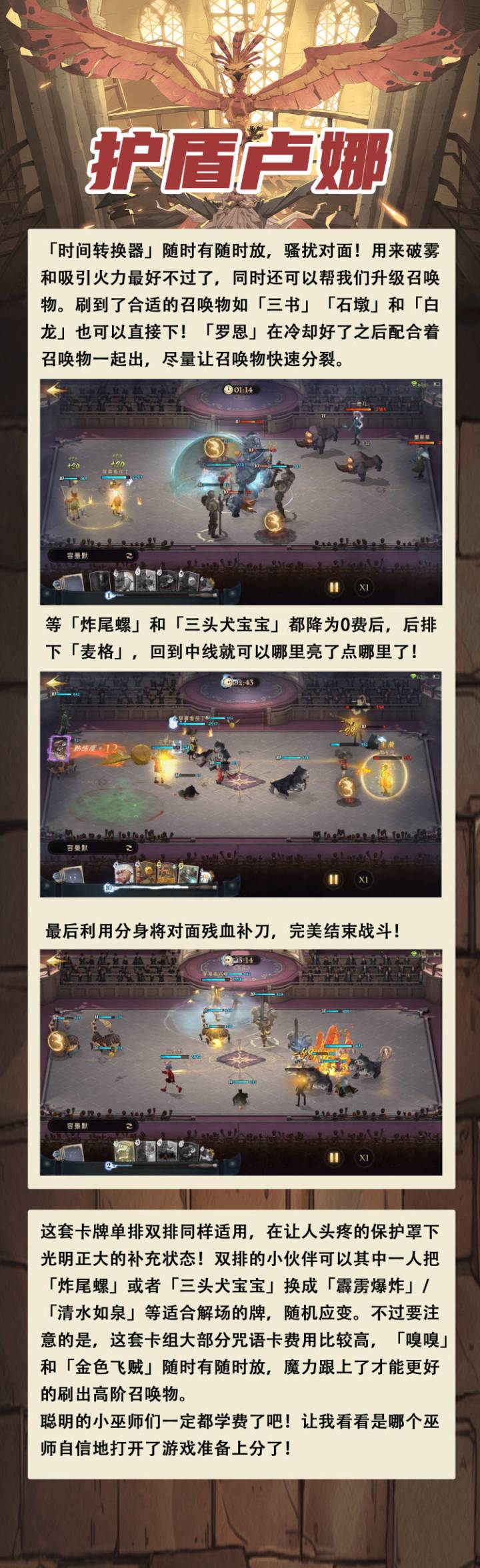 2.迎战巫师的解场能力都十分优秀,尤其是斯内普,不建议三人组合中有太多召唤物。