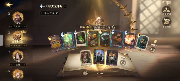 哈利波特45天了,也是从一个小白慢慢的玩到单排殿堂了,这游戏也没有别的什么好玩的,就是决斗。这套卡组挺强的,到殿堂没什么问题,前期随便放就行了,要看到白龙跟金色飞贼,然后654,432,这样循环就行了,伙伴卡我也试过很多次,第一张带哈利,最舒服,第二张可以用画家,第三张还是麦格,小伙伴们来用这套卡组上分很快QAQ