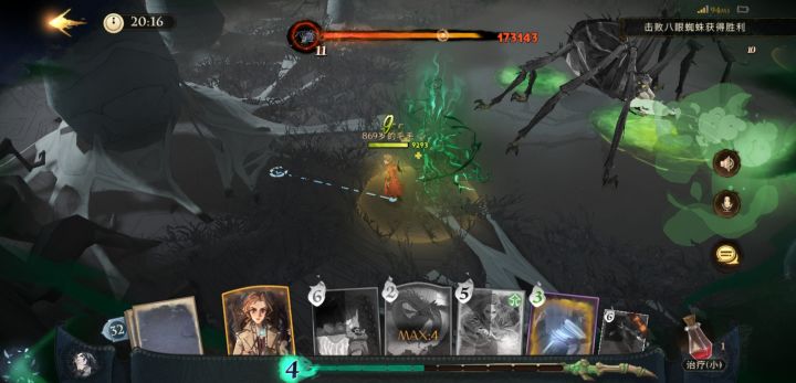 很多同学表示打人柳过不去,技能不好躲。可以试试这套卡牌,基本上是无脑过。 重点:带加血,保证卡珊和蜘蛛卵的血量。