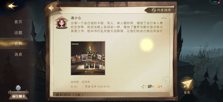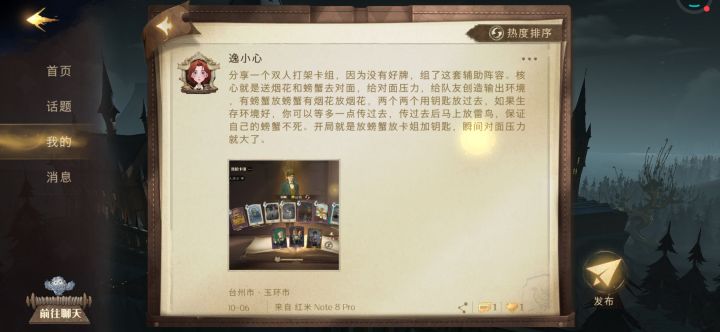 萌新的我,还是没有抽到金色飞贼,完善了一下这套卡组,图二加入一个风吹对付啃大瓜的护盾,这牌组的核心玩法都分享在图三图四了,就是压制对面的生存空间,让对面一直用技能解你传过去的螃蟹和烟花,然后利用吼叫书增加伤害破坏对面站位。低段位胜率还是不错的,毕竟低段位的萌新跟我一样单纯,拿过几次训练赛的冠军,碰到对面一堆大神牌,还是照样被虐,哈哈哈。继续抽卡,我会完善这卡组的。还有发现一个很有意思的事情,你可以试试用一费牛卡推螃蟹,移动喷火塔,就是移的有点慢,不介意加个巨人推可能会快一点,纯属娱乐。(伙伴也可以换一个加费的洛蒂,好想要赫敏呀)大佬也可以给我建议。