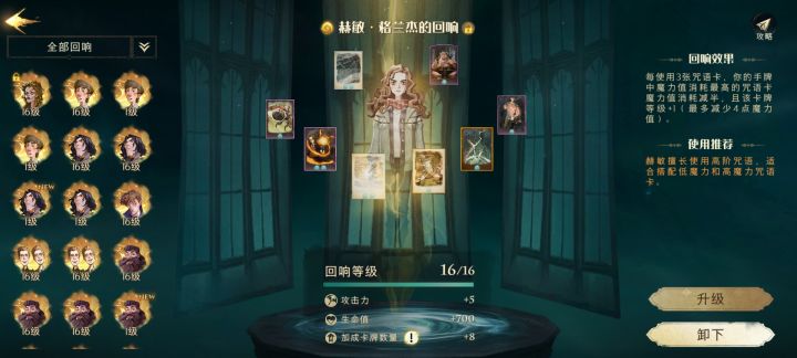 赫敏第一个金回响!天不负我啊哈哈哈哈哈加成卡牌其中6张都是咒语卡,感觉还行,好像是我金回响里加成卡最好的了