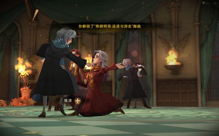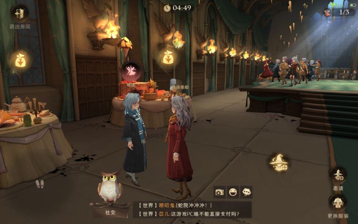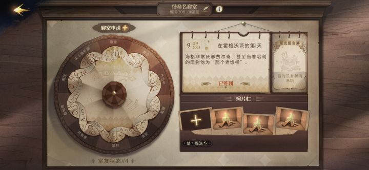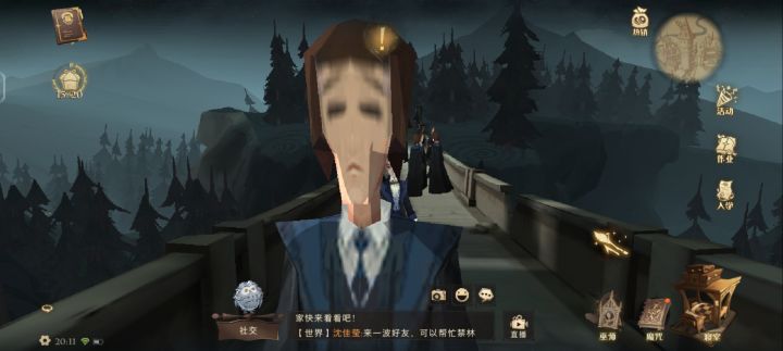 其中新手校园任务里面的第一个就有海格在礼堂前广场等你。然后据说你要到礼堂前广场需要四个玩家在一个宿舍里面同时点了那个头上的感叹号,然后点亮火苗以后才能一起去,因为这一定得协作,如果有人意向一起在一个宿舍的话,我们到时候第一个就先完成这个任务。