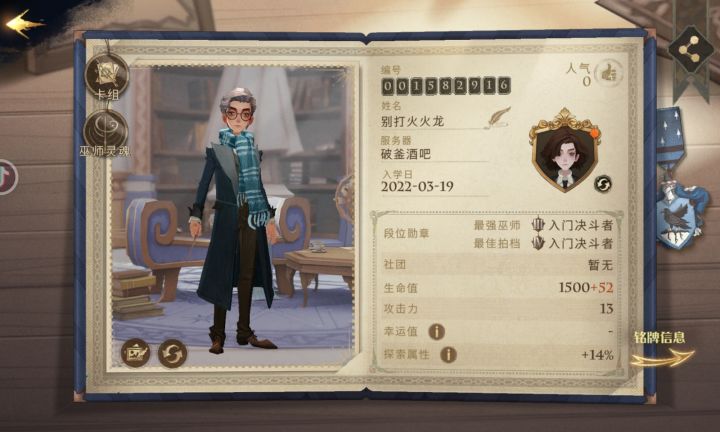 想找个人带带俺,首席的我。蛇院体验服奥。😡小号有点肝不动。魔法书也就22级