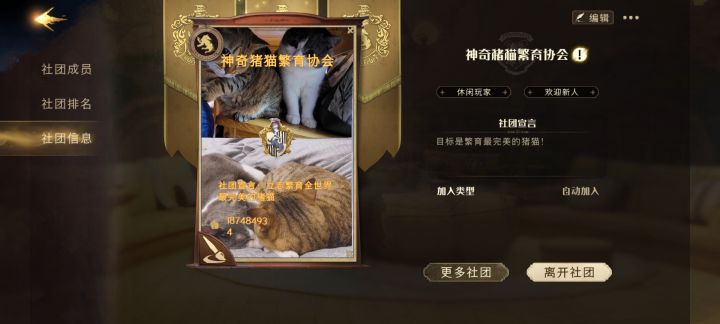 【招募】獾院社团“神奇猪猫繁育协会”招人啦!!可带12级飓风/可借衣服我们的目标是:繁育最完美的猪猫!咱要求不高,一周参加一两次社团活动就行🥺社团聊天氛围良好!大家都很和谐友爱!打草药还在担心别人乱拿吗!来我们这就不用担心这个问题啦!每周一二三答题,四五六七魁地奇舞会随机草药固定一二开,之后有需求也可以跟社长说🉑开还在担心没有12级飓风收集不了手记吗?来我们这!想试试星云,火龙,哥特,幽灵吗?来我们这!期待你的加入!进来的小伙伴转盘三十抽清空🥺