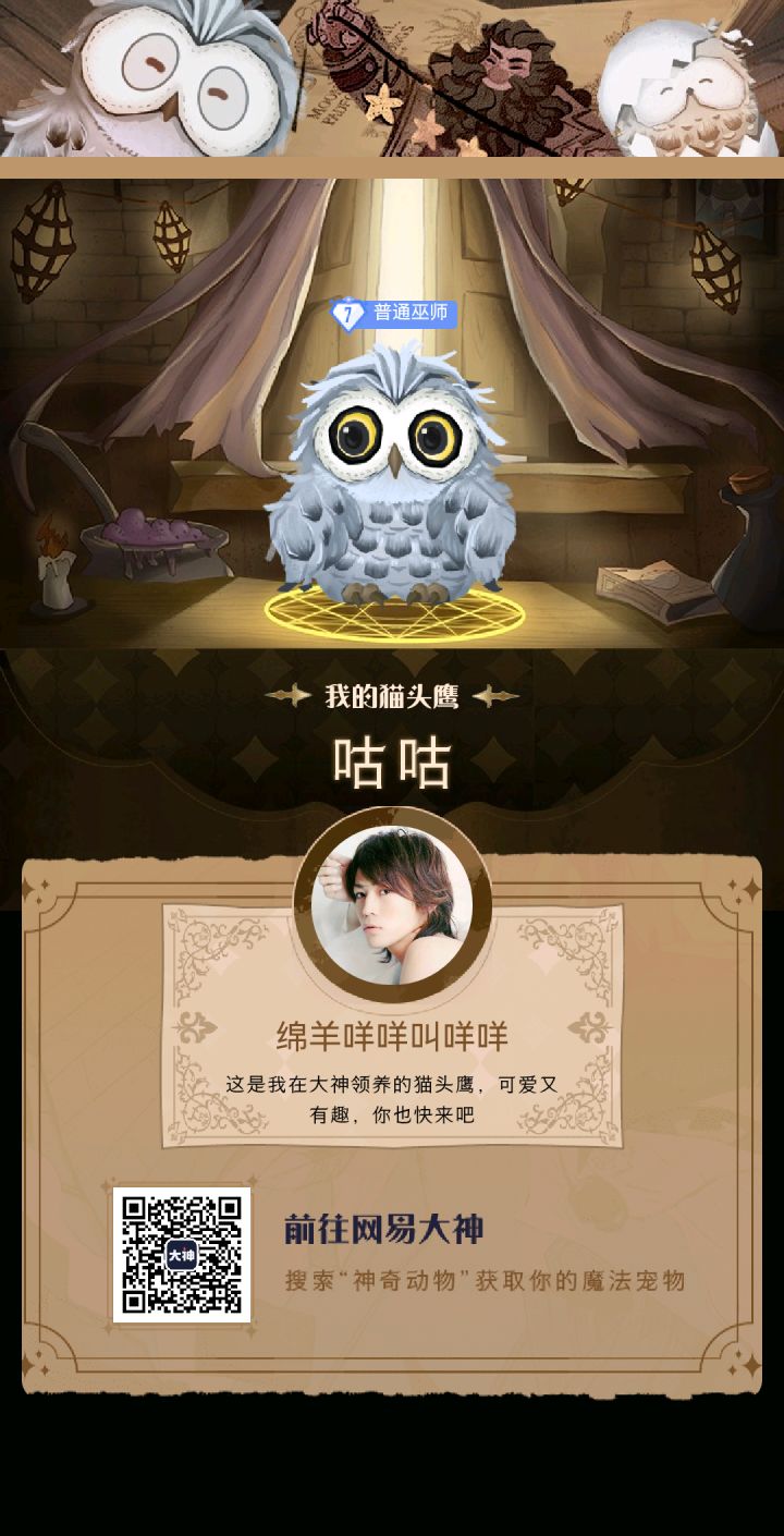 #我的神奇动物# 我在大神社区免费领养了一只猫头鹰”,好萌好可爱啊!