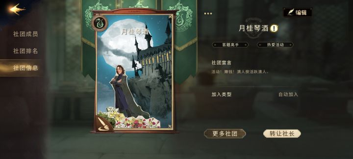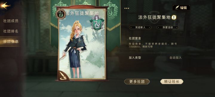 那个…莫名其妙成了社长,不想废社也来招招人。斯莱特林三把扫帚服务器的月桂琴酒,我们可以偷偷商量比如答题的时候轮流做一次隐藏成就。总之就是求你们来玩!魔法史copy答案可以永远相信我!(也不完全)