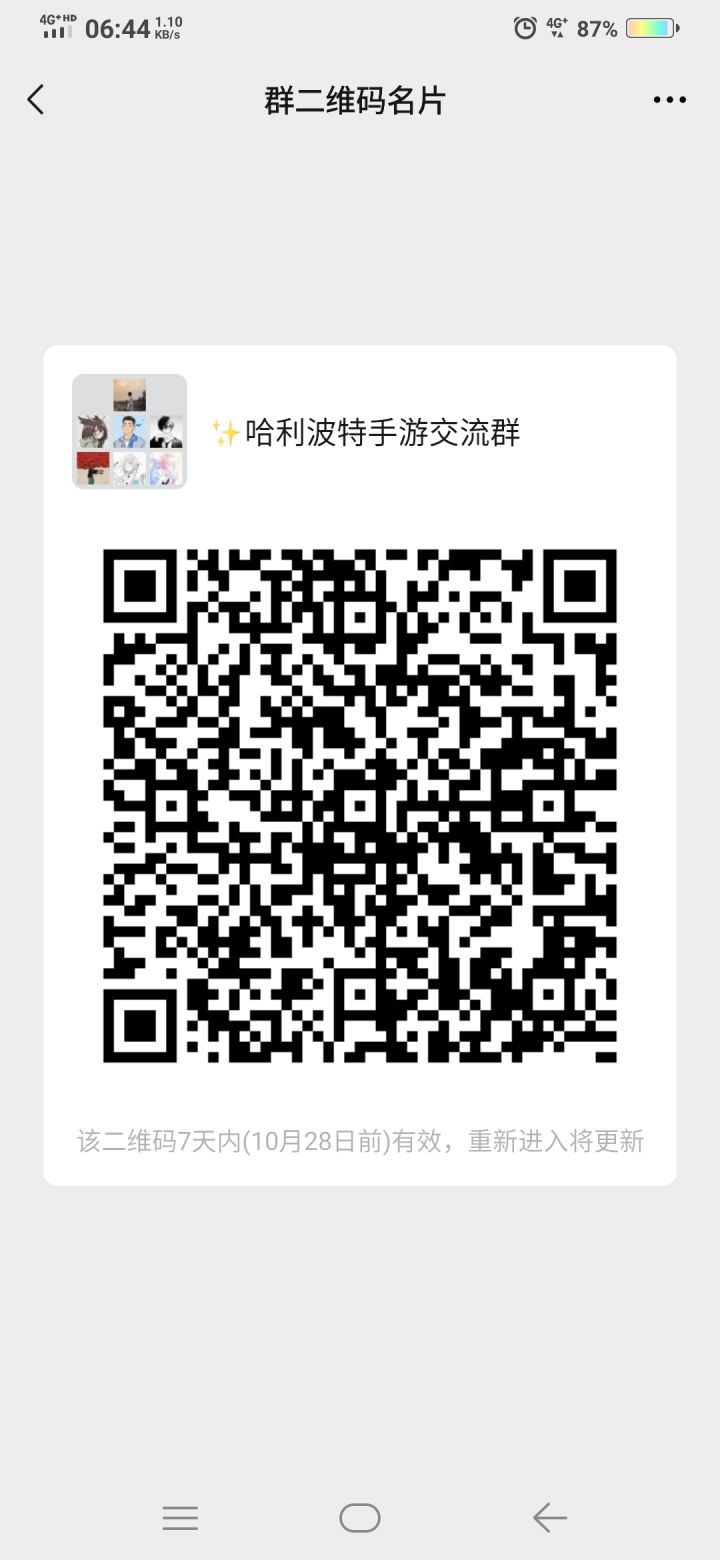 这是哈利波特微信交流群,进群的小伙伴可以和大家一起交流游戏内容,趁现在人少,不乱,赶快入群!