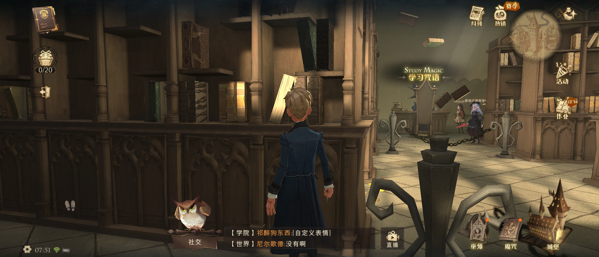 线索4①拼图信息:“弗雷兄弟从来都不懂得植物的奥秘,他们也没必要懂。”②拼图位置:打开地图,进入草药课教室,进来就可以看到卡姐,和卡姐跳舞之后就可以获得拼图碎片。线索5①拼图信息:“自从在卡珊德拉面前出丑以后,丹尼尔一直在某个地方默默练习。”②拼图位置:进入黑魔法防御课教室,往左后走,就可以看到丹尼尔,和丹尼尔pk后就可以获得拼图碎片。线索6①拼图信息:“当砖墙缓缓打开,眼前出现的一