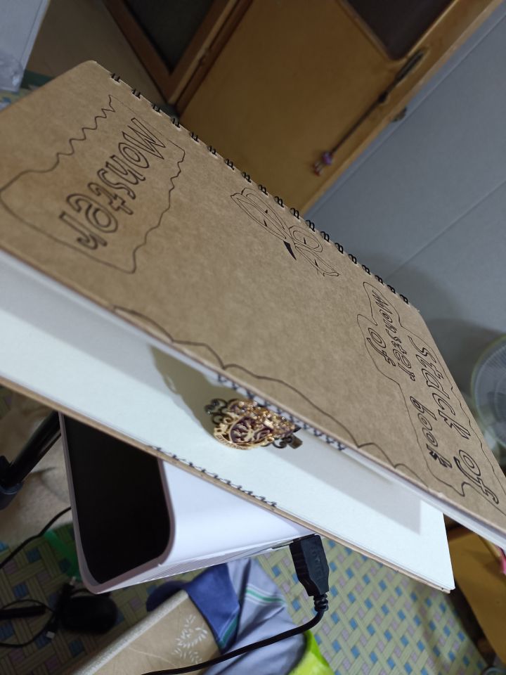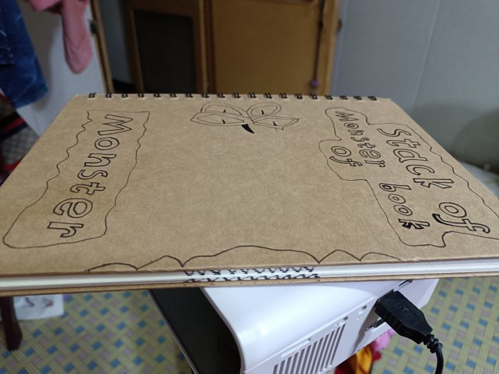 三本妖怪书,首先准备一本褐色的本子,然后在书皮上画画,😂我用的素描本,画牙齿,画几个叉叉连一起就是牙齿了