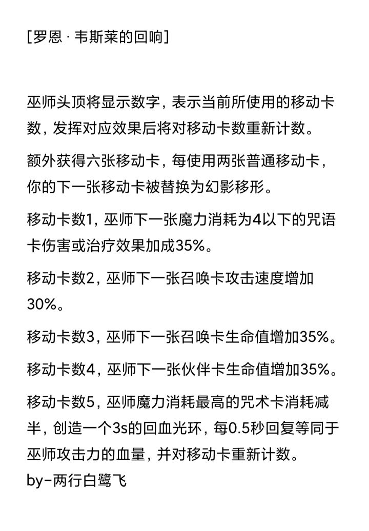 ★全新回想「罗恩·韦斯莱」预告★同为三人组之一的主角,却迟迟没能拥有名字,如今他来了!罗恩似乎总是扮演着插科打诨的搞笑角色,在与哈利和赫敏一同时出现表现欠佳,令人们往往忽略了罗恩的智慧与勇气。参照巫师棋关卡,我的回响设计思路将着重强调罗恩的智慧,发挥这个回响的策略性。巫师在使用罗恩回想时,可以根据不同的场面,灵活选择强化的强化魔咒卡或者召唤卡,配合相应的移动数打出自己想要的效果。不过因为罗恩处处都表现弱一些,所以回想发挥出来的能力总体比原版弱[旺柴]😸