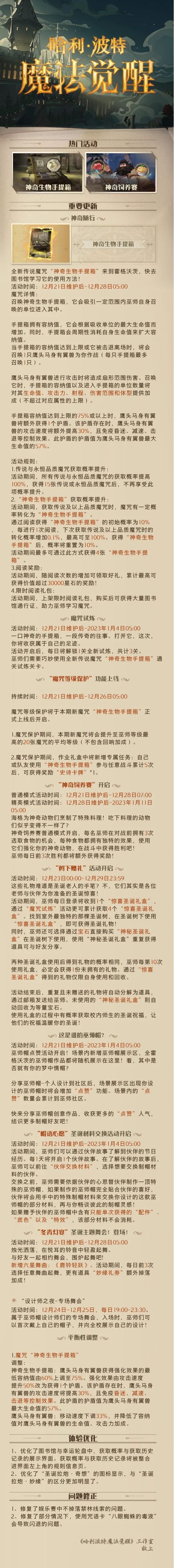 《哈利波特:魔法觉醒》12月21日维护更新公告