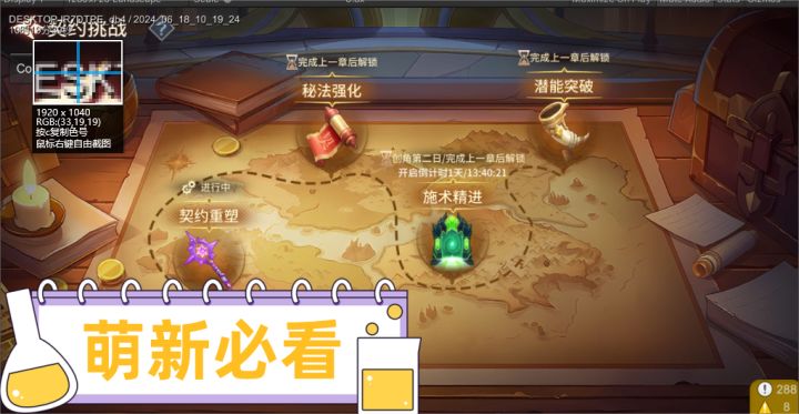 萌新进游,目标在哪里?为了帮助契约者们能够快速的熟悉游戏,契约挑战给各位一个很好的指导。契约挑战是整个冒险故事的一个缩影。包含契约重塑,秘法强化,施术精进,潜能突破四个阶段。每一个词条都是玩家目前的一个阶段的缩影,每突破一个阶段可以获得丰厚的奖励!因此在萌新阶段,根据契约挑战提供的任务进行游戏是一个非常不错的选择。#今天游戏圈发生了啥 #发现好游戏