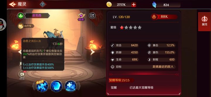 这次来说下比较好用的治疗卡首先是紫卡皮皮西,皮皮西虽然了紫卡,但是可别小看她的治疗,前期还是很实用的,大招了恢复两个追虚弱的友方恢复350%的治疗,而已普通攻击也给最虚弱的友方回血,主堆攻击,因为她攻击越高治疗越多红卡西王母西王母是一个双重奶盾,为什么呢?因为她治疗友方的同时还加盾,最主要是还能复活,也是比较实用的卡,主堆生命防御,因为她的治疗都是百分百比的,肉就完了红卡自然之主自然之主