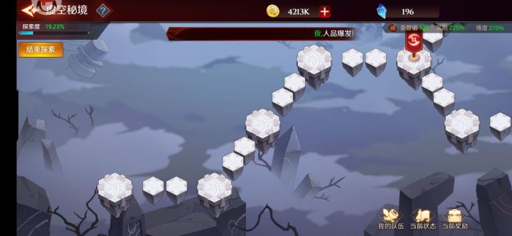 虚空秘境玩法的大量资源【生命石 金币 突破石 各种卡碎片】产出让它成为游戏的一个核心玩法。今天就来介绍一个这个玩法。1.消耗秘境券开启个新的秘境进行探索, 秘境券可通过委托每日任务、活动等方式来获得。2.探索秘境时会根据玩家对所遭遇事件的选择增加或者减少贪婪值,贪婪值影响敌人强度和掉宝率。3.探索秘境时,选择结束探索或者战斗失败将提前结束本次探索,仅保留50%探索收益。战斗失败时可以使用时光