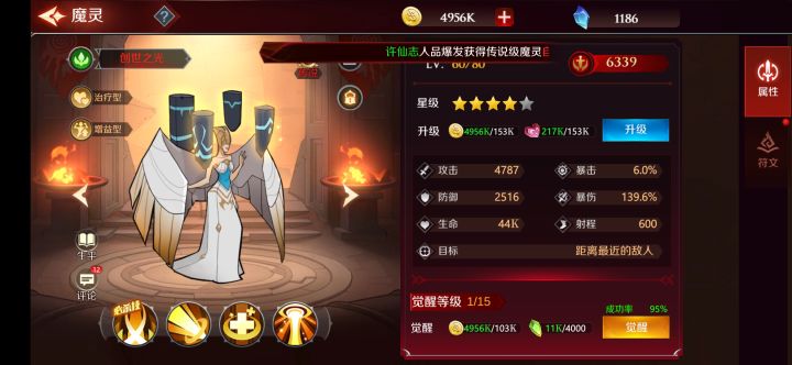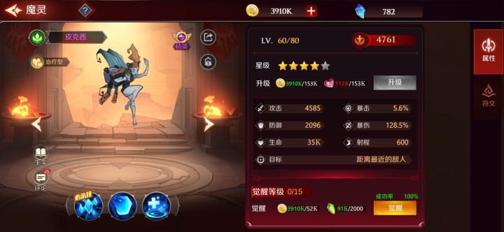 首先我要给大家推荐的就是紫卡皮克西,这个英雄别看是紫卡,但他在队伍里的存在价值前期超过了很多红卡,主要原因就是她是免费送的也很好抽,奶量十足如果队伍里面有自然之主,奶量更是惊人,就我上面的属性大招能恢复两个虚弱队友2万多的血,还可以解除控制,还有她的普攻命中敌人也能给最虚弱的队友加3000左右血,别小看这点治疗,往往就差这3000助你过关,前期配合自然之主和创世可以很好的保护前排,这里个人觉得前期