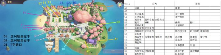 图可能有点小,将就看一下?香米我也没搞到。搞到会更新。漏了个A2点的页岩橡果。更新Ver1.1更新F4点(圆形扇贝)Ver1.2更新F3点(海鲜豆)Ver1.3