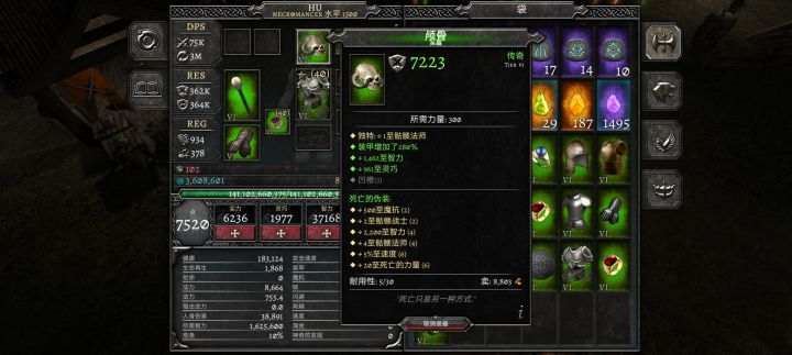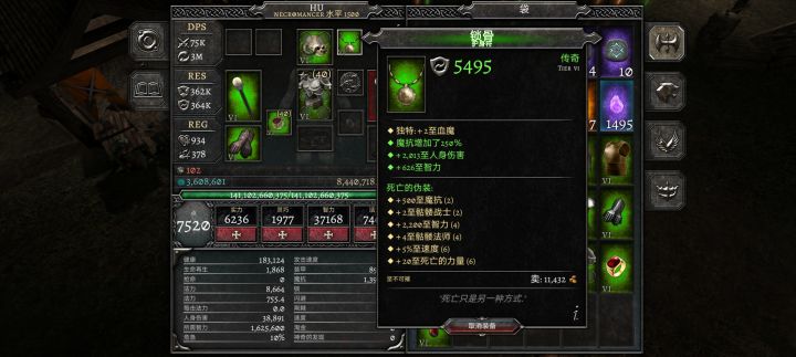 我之前还以为红套装刷不到,我才要绿装,我背包和仓库都满了,等我再打到就会换成没强化的死亡的伪装套装,死灵专用6件套死亡的伪装套装:+魔抗+智力+速度;技能:+骷髅战士+骷髅法师+死亡的力量 自编套装的名字的起源:这是战场方阵上的墓地,在凄凉惨白的月光下,到处都是森森白骨,有骨干、颅骨、锁骨、肋骨……