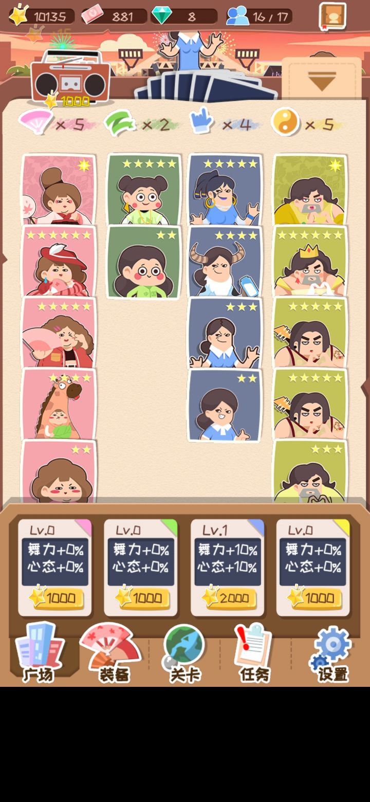 先上图10人口 76关 卡住 肝不动了 属性提升50%左右依然打不过。言归正传,解答萌新三连问,¥花在哪,前期怎么发育,四种属性大妈的区别(怎么卖大妈) 1.¥花在哪,买人口(人口=实力 这么赤果果的提升没什么可考虑的)分析: 玩之前 看到有人说升音箱 我就点了两下,然后就一直在等 人气(星星⭐️)慢慢涨 直到后面发现 点大妈,可以获得100人气。 相比点一次100人气,每秒跳的人气获取方式
