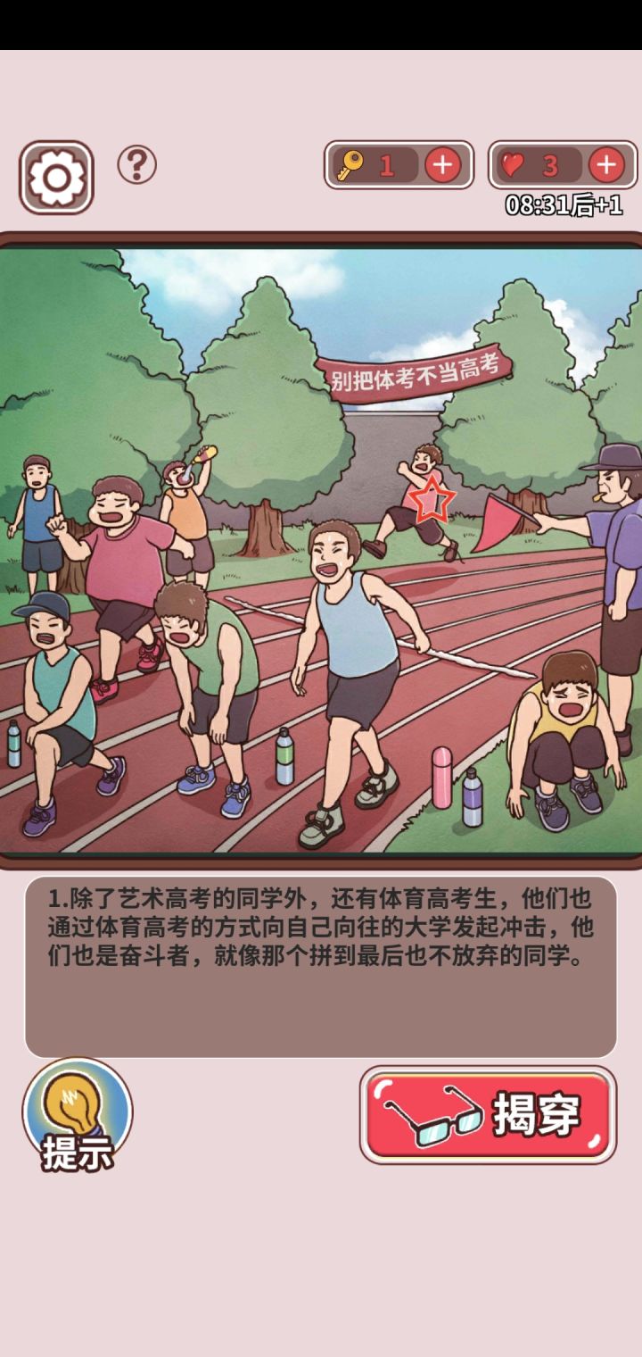 是一款轻松搞笑的寻物+放置类游戏,我们在游戏中扮演一位高中班主任,在校内找出违纪的学生并对他们进行教导第一关:假期作业1. 按照下方框内提示,点击图中黑板上的【新学期大扫除】,在点击揭穿按钮2、李华和我说暑假历史作业弄丢了,但是我明明看到了他的历史作业!点击地上的【历史】作业本,点击揭穿3、如果不是历史作业丢了,那他为什么那么慌张?点击课桌上两份相同的【作业】4、不仅仅是作业抄袭,他的另