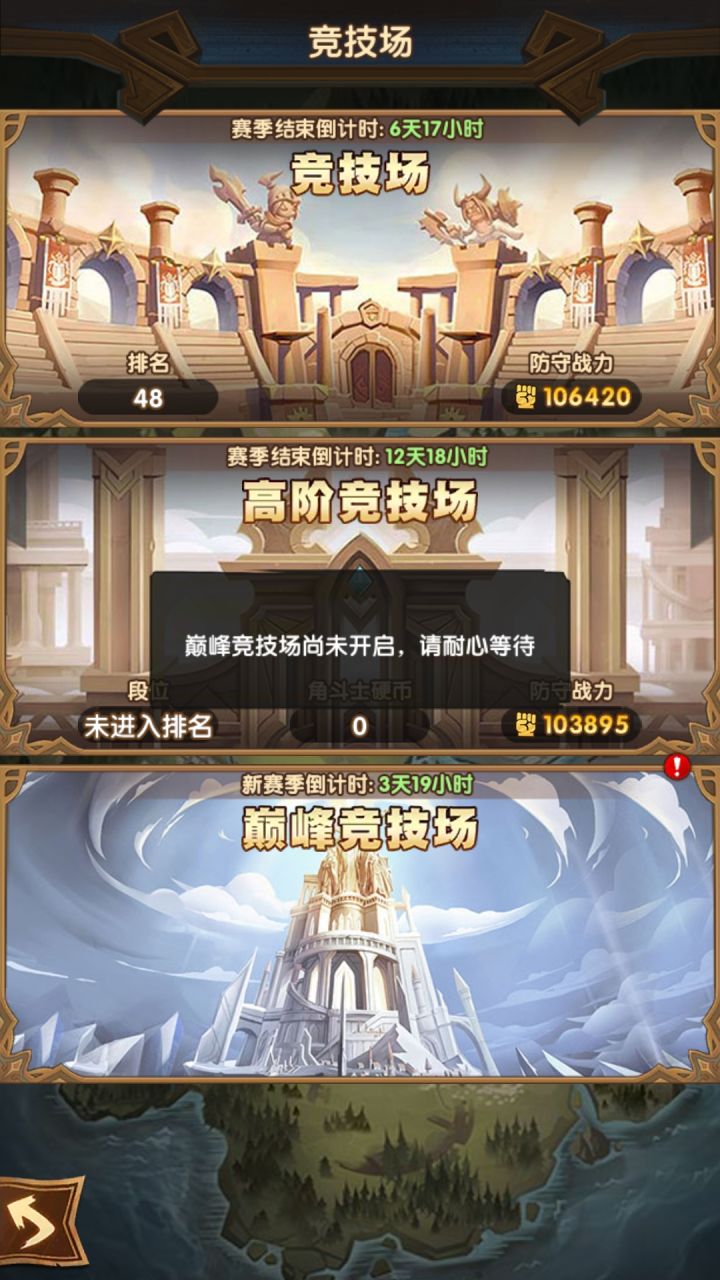 巅峰竞技场一点竞猜按钮就卡在正在加载这里了,试了四五次,只能重启游戏