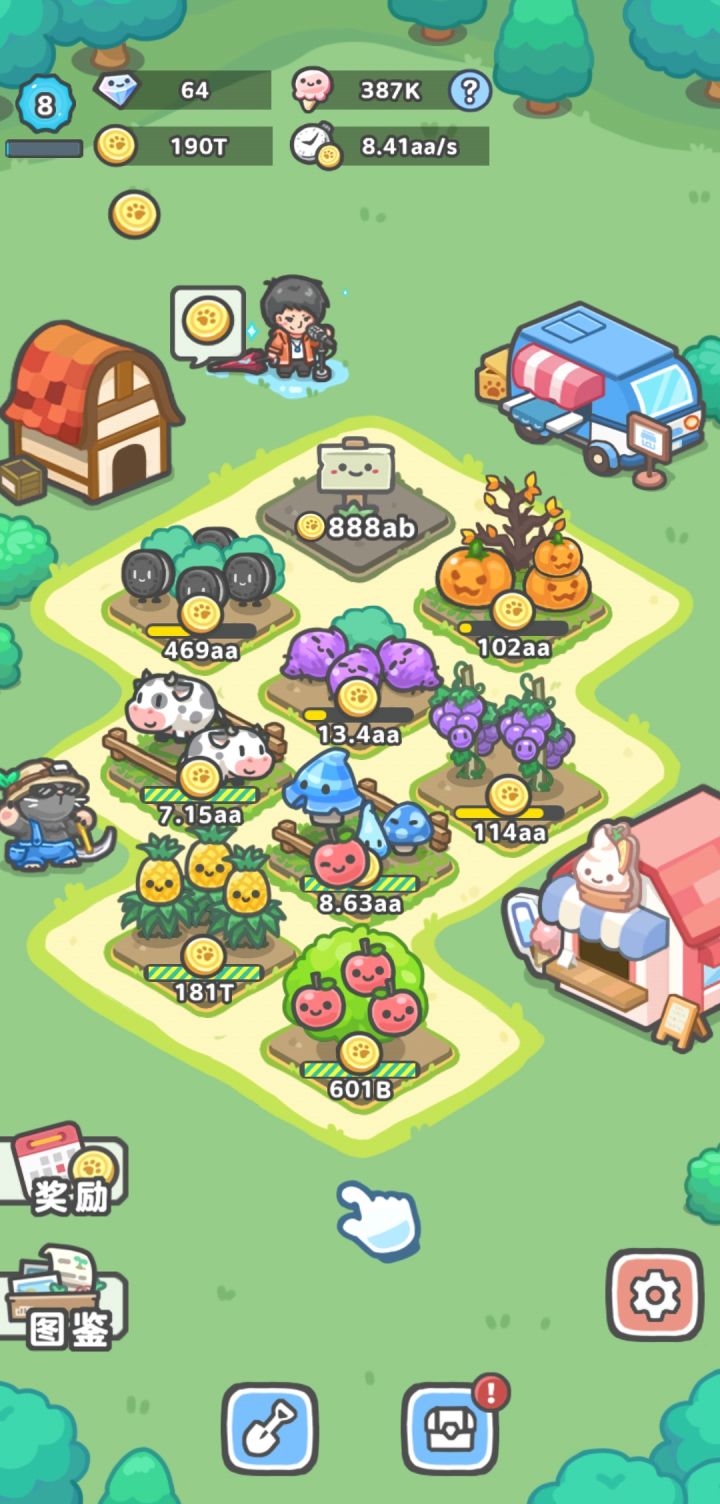 最开始玩了一遍,到第七块田只看到下面有一只手在动,点了也没有反应;删了又下一遍,这次玩到六块田了,那只手还是只是动,没有其他人显示的图标