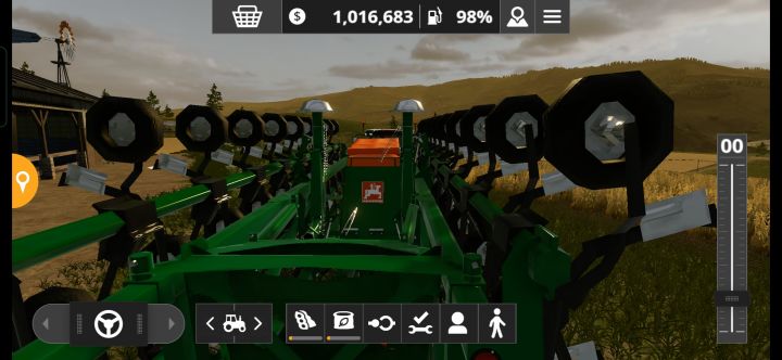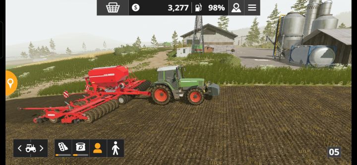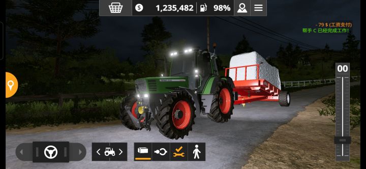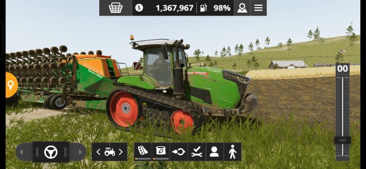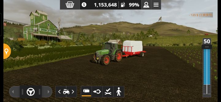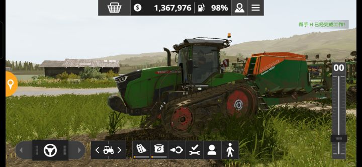 开局送的芬特拖拉机有点拉不动这个播种机,上坡极速5……