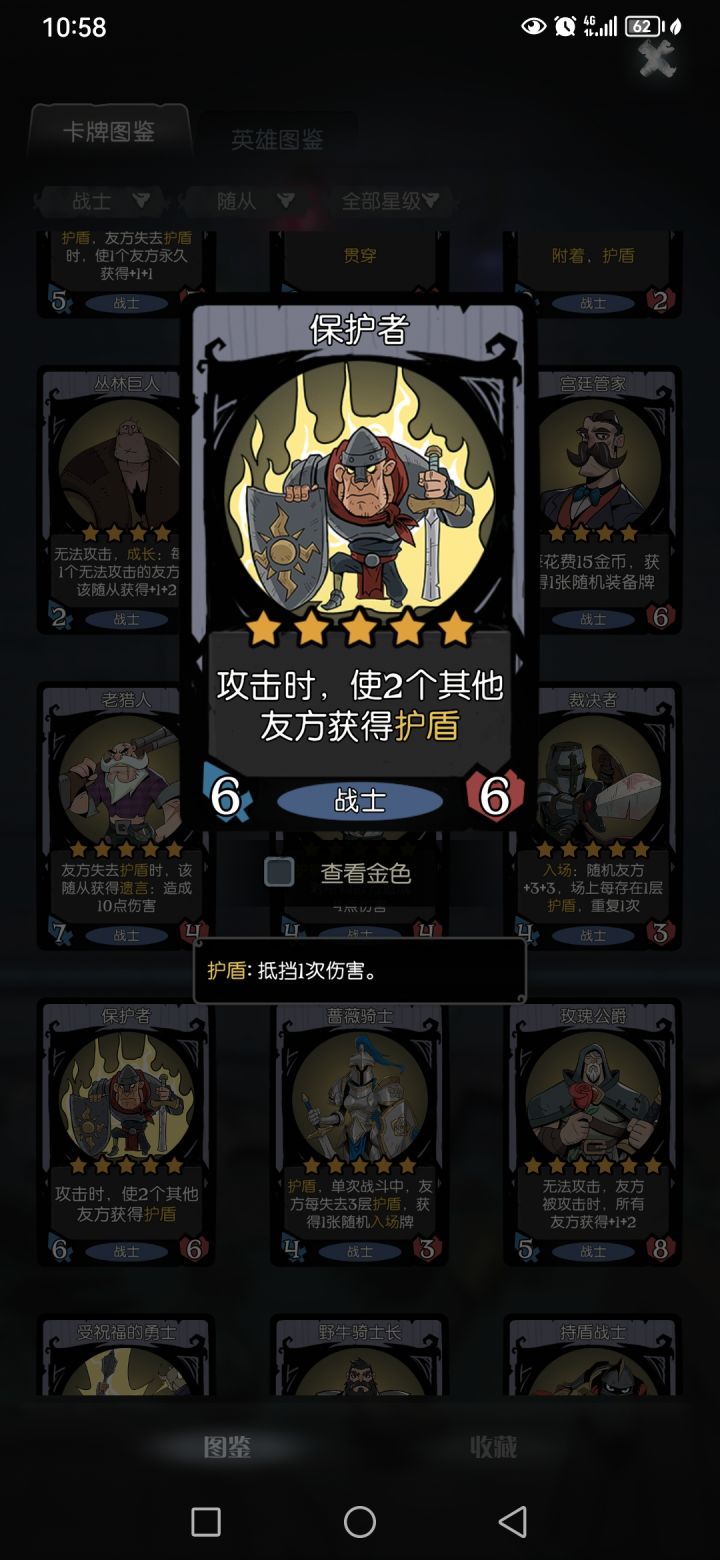 保护者攻击时给予其他2个友方随从护盾,亲测可以给另外一个保护者护盾,前面顶了一个前期养的贼大的双盾,最好只带这三个防止保护者盾给错人,只要大哥和保护者开局不被秒就无敌,当然被直伤秒怪流和风怒的大哥血克,但是只要对面没有,那么,这把就无敌,对对手的阵容要求很苛刻,但是如果成功了是真的快乐,图上这把我缝合怪(0费技能,使一个随从战斗开始时附身到同列的一个随从身上)所以可以挂一个狗头人双倍战吼养保护者属