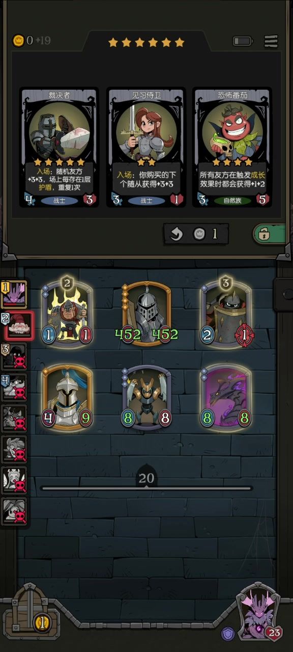 随便截的图可能稍微影响观感,凑合看吧,打的第三把刚发现阵容的话就除了自然族之外没有什么特殊的需求,因为key牌就是自然族的自然之心跟中立的死灵傀儡师整体思路就是前中期搭配经济跟经验牌速拉等级的,(成长给金币,经验,法术牌)有经济了自然就有钱拉等级,能转化成你的战力,最后不管是直接找到别的体系的高等级核心牌还是继续走这个体系找类似龙骑士队长这类型的牌都是可以的最后是一些小问题吧,就是竖屏这类型