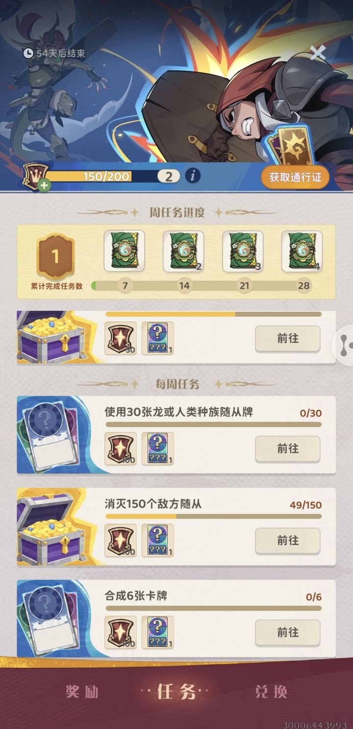每周任务显示为零,这持续一段时间了。周任务的奖励卡包,不让领吗?