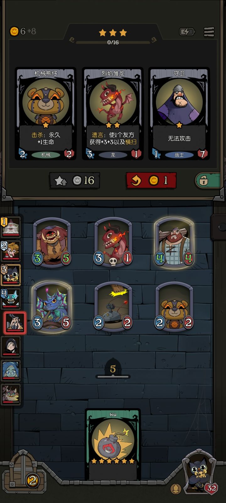 1.把倒计时放在等级下方,可以大一些。放在下面很多时候思考起来就忘记看了,不太明显。好几次都时间到了才发现。(一般静音)2.精简一下各种族的牌组吧。虽然想有别于炉石,但是炉石酒馆还是可以参考的。现在各种族没有明显特色。(可能我没背牌)3.参考炉石,增加牌池上限。一张牌就15张还是咋的。4.增加等级出牌概率提醒(有人提到过)