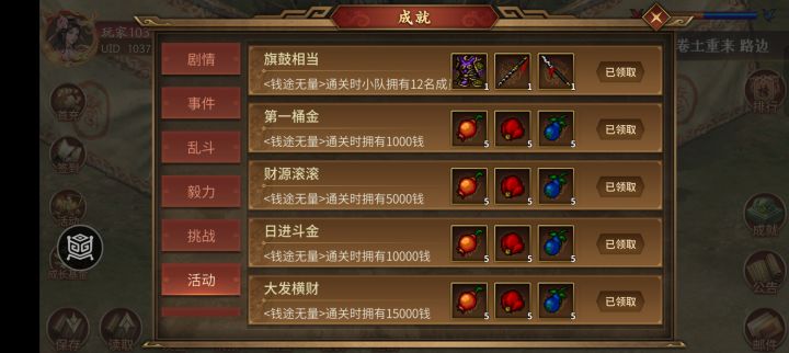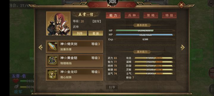 首先说明:只针对过关就行的,不打排行榜的啊1.先把符石点完,特技也点完2.准备一个好点的辅助装备,然后装备上3.合成所有的强果,推荐武力4.开始进入游戏,先不要接任务,出生地买粮或木,那个价格低买哪个,然后一路用武力果,目标左上角,靠反击杀敌,如果角色装备店装读回合初档,或重开。5.到左上角后卖粮或木,买价格低的,先不用买背包6.到左下角买或买粮或木,有钱了买特技7.在左上角和左下角