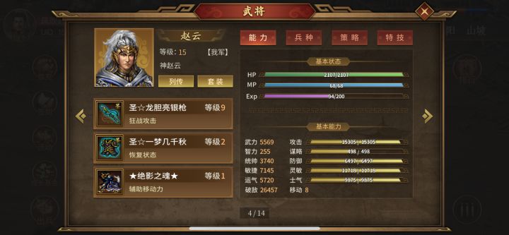 大佬跳过,萌新打地狱基本操作,每回合走位见上面8张图,赵云穿浮生甲+绝影,若吃有恶路移动也可带玄武甲。推地狱的话,二阶皮肤中“雷公”一定要排第1位买,其他浮生、刘备、关羽一阶皮就足够用了,再省点刘备、关羽一阶皮也可不买。真龙胆枪一定要优先用功勋合出,龙胆枪是平民第一枪,除推周赵云1挑5外,爬塔养真伤武将(糜竺、廖化)带龙胆枪,清兵速度仅次于天魔神吕,嘎嘎乱砍。圣三五虎上将,一夫当关的三哥“猛张飞