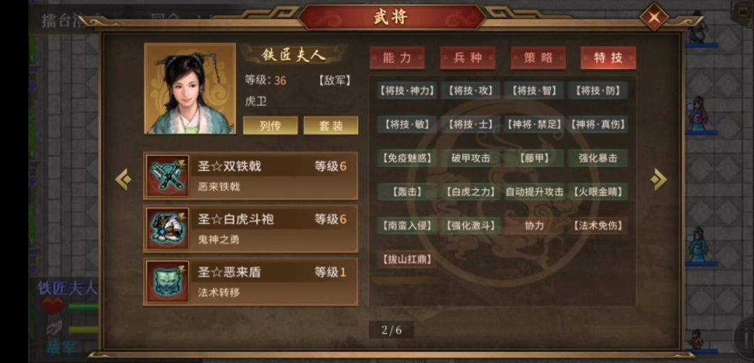 演武场三大难打组合中最强的。3千层后,铁匠夫人藤甲(物理攻击必防)+恶来盾(法攻反弹),近乎于“无敌”,采用了同归于尽打法。本小视频是4952层录的,做为我发的第10个帖的小补充(更直观些),全程压敌军至36级。