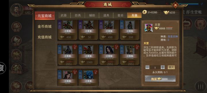 一周目打的历史普通,没有浮生三件套,只有以前买的破军和浮生刀,和爬塔拿的刘关张二级皮和二级套,试了下挑战二发现打张强刮痧,接下来是推二周目幻想线拿浮生三件套吗?