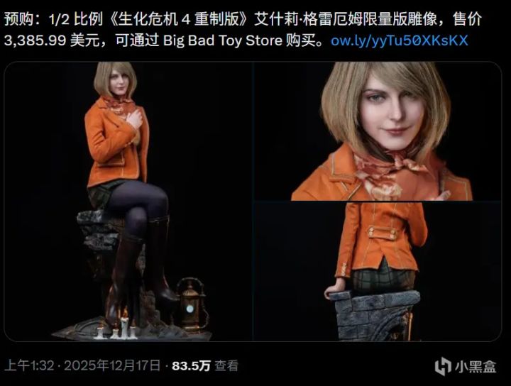 开天工作室(Infinity Studio)近日在海内外渠道同步开启了《生化危机4:重制版》阿什莉·格拉汉姆(Ashley Graham)1/2比例全身雕像的预售,官方与多家海外经销商页面显示该款为限量 299 体且已接受预订。媒体报道指出,预售价格为 18888 元,正式发售价为 20888 元,并标注雕像高度约 84 厘米。相关中文渠道对商品材质、布料与 LED 灯光等细节也有较详细的介绍。