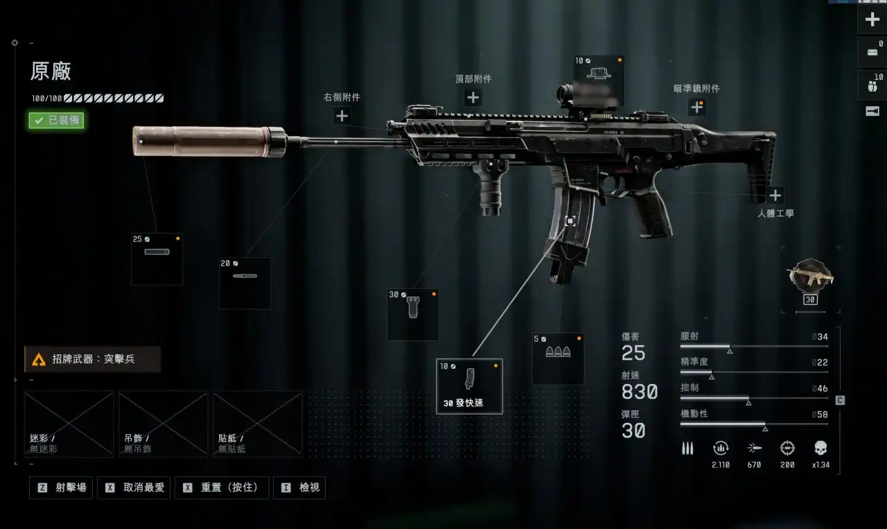 作为一把新手就能游玩的01枪,它的强度可以说是相当之高,在近距离面对大部分枪械占优的同时在中距离也有出色的ttk和btk。和m4相比他的最大优点就是出色的伤害衰减,20m之内每发子弹25伤害四枪死,在20-80m的范围内每发子弹20伤害5枪死。在搭配上他830的超高射速,无论是在近距离还是中距离都有着出色的作战能力。唯一美中不足的就是它的后坐力比较大,需要花较多的改装点数来弥补后坐力。配件推荐