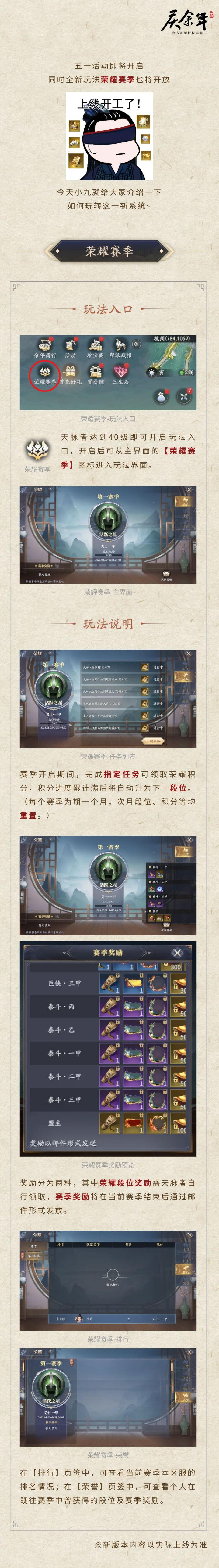 全新玩法“荣耀赛季”也将开放!天脉者们一起看下玩法介绍吧~