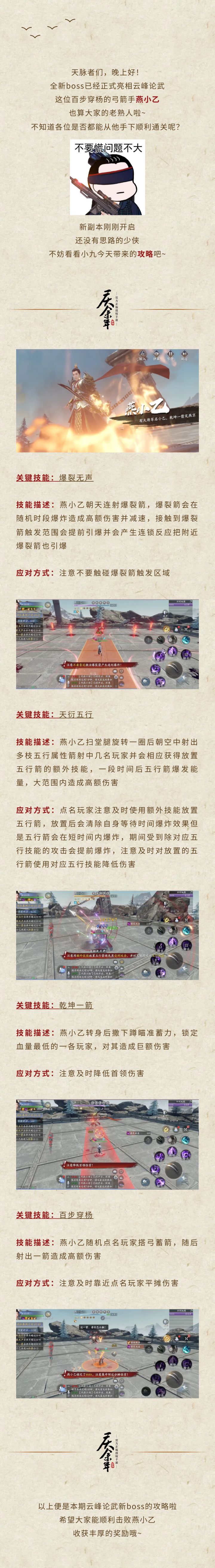 各位天脉者们好~今天为大家带来的是云峰论武全新Boss——“燕小乙”的攻略,一起组队备战吧!