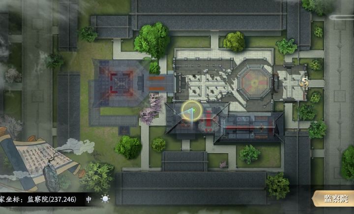 决战神庙中监察院书柜位置 开监察院大地图点中间那个建筑物中间直接自动走进去左边楼梯直接上二楼