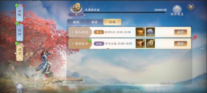 齐庆两国为了选拔天下贤才,特联袂举办了此次‘闲人’盛会。在这里,你将会是受到绝世宗师、当世名将、绝代佳人等等的重重考验,各位俊杰可绝对不能错过(●’◡’●)哦。接下来,就由小编来为大家带来本次《闲人日记》活动玩法的详细介绍。闲人日记为单人休闲竞技活动,活动的开启时间为每周六早上10点到晚上22点,少侠可以通过活动界面的闲趣页签进入活动,与来自五湖四海的奇人异士们一决高下。正所谓天下武功,唯快不