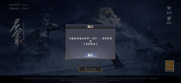 进游戏十分钟,充值了下,就掉线,再登录一直显示1007,这是不让玩了????我已经花了半个小时修复了,还是进不去😑😑
