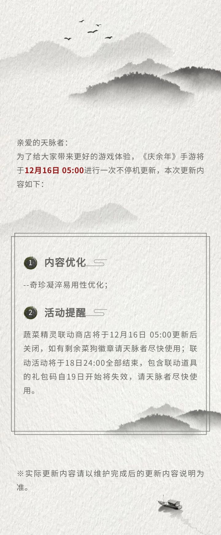 【公告】12月16日不停机更新公告