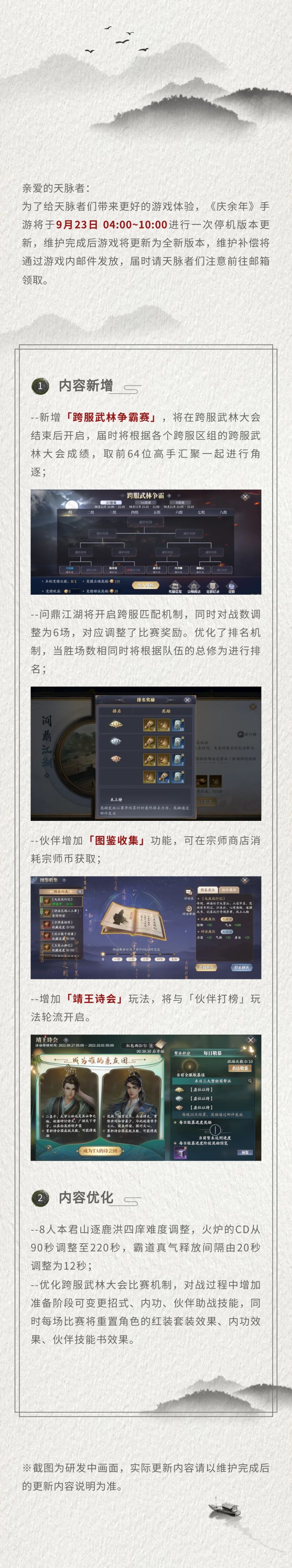 各位天脉者,晚上好!九月过半,秋高气爽,正是天脉者们大展身手的好时节!这不,跨服武林大会新赛季即将开启大家不愁找不到施展拳脚的擂台啦!新赛季开启在即下面就和小九一起看看规则说明吧~紧张刺激的跨服武林大会即将开启天脉者们都准备好了吗?更多精彩内容,敬请期待后续消息哦~