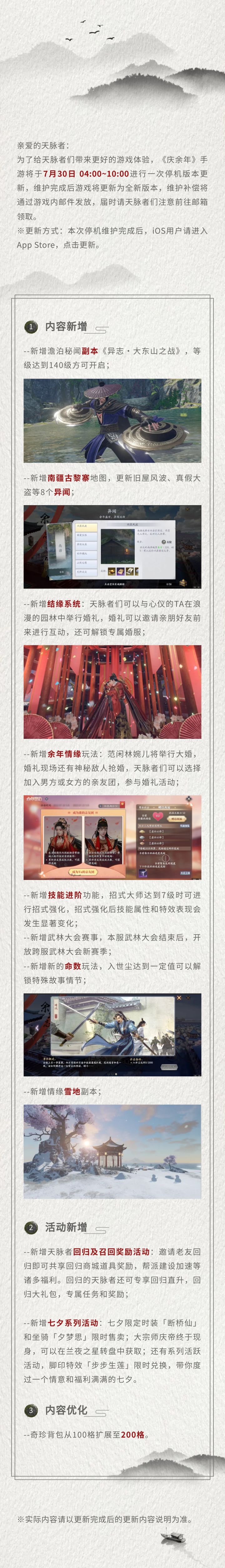各位天脉们晚上好~7月30日更新公告来啦!搓手手期待ing请天脉者们查阅哦!