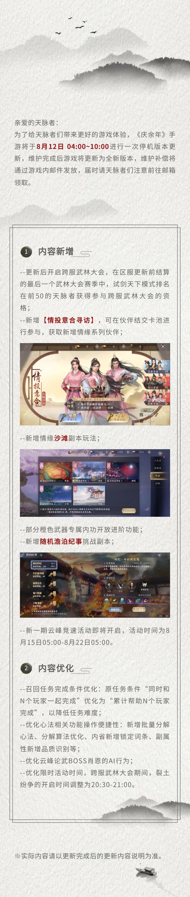 新版本将至,今天小九给天脉者们介绍的是新玩法“余年情缘”,一起来看看吧~