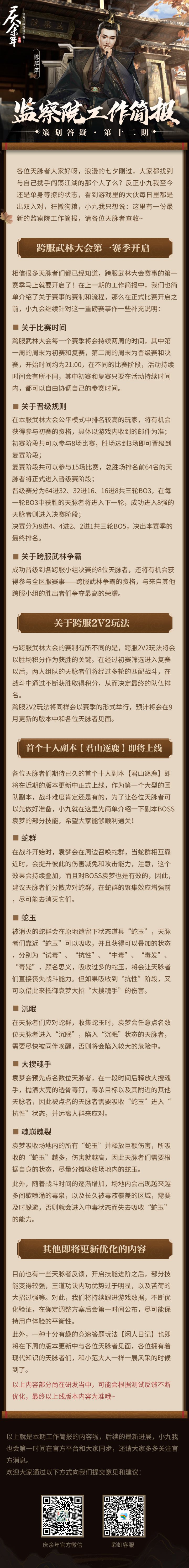 各位天脉者们晚上好,本周周版本更新公告奉上,请查阅